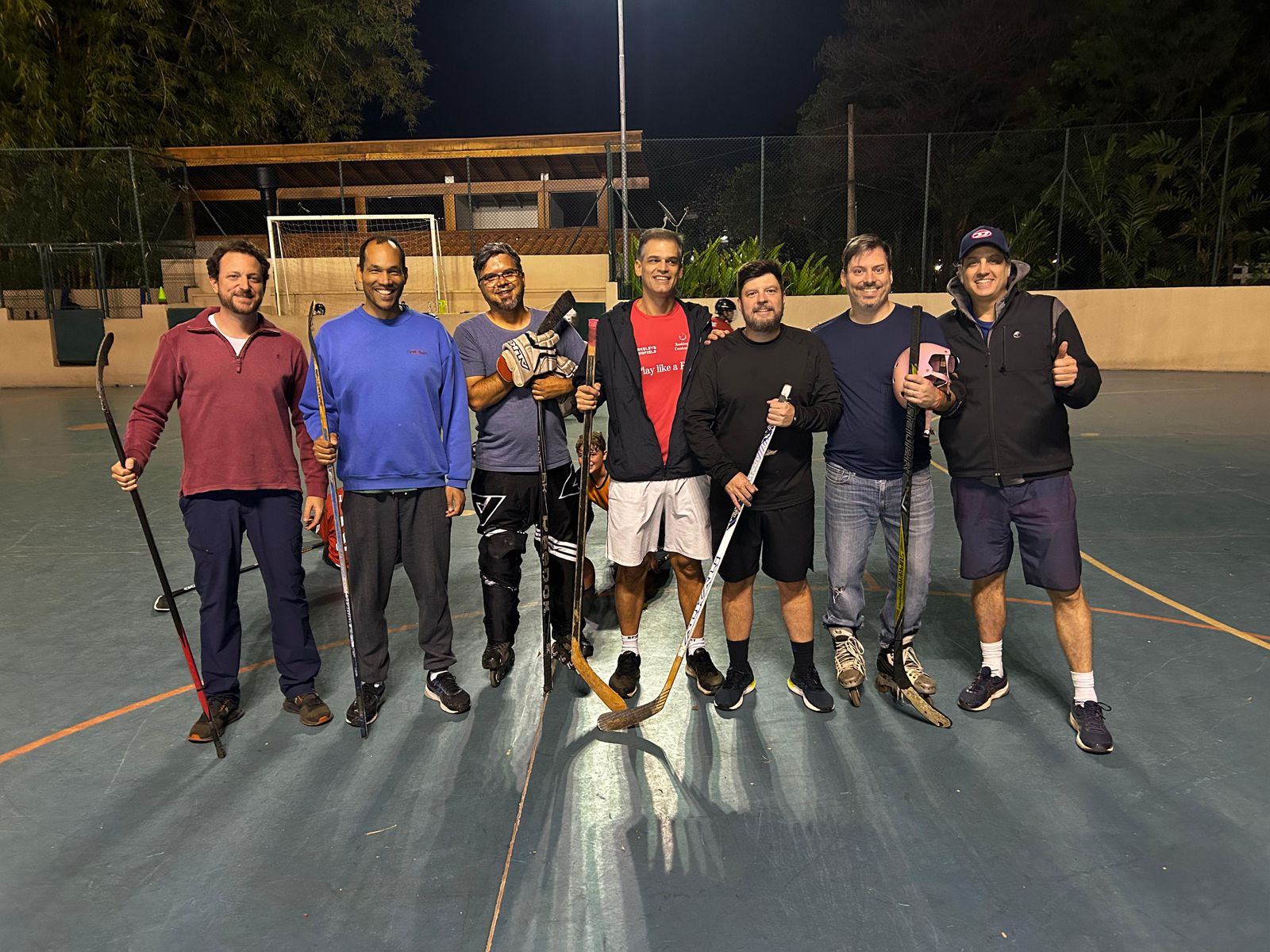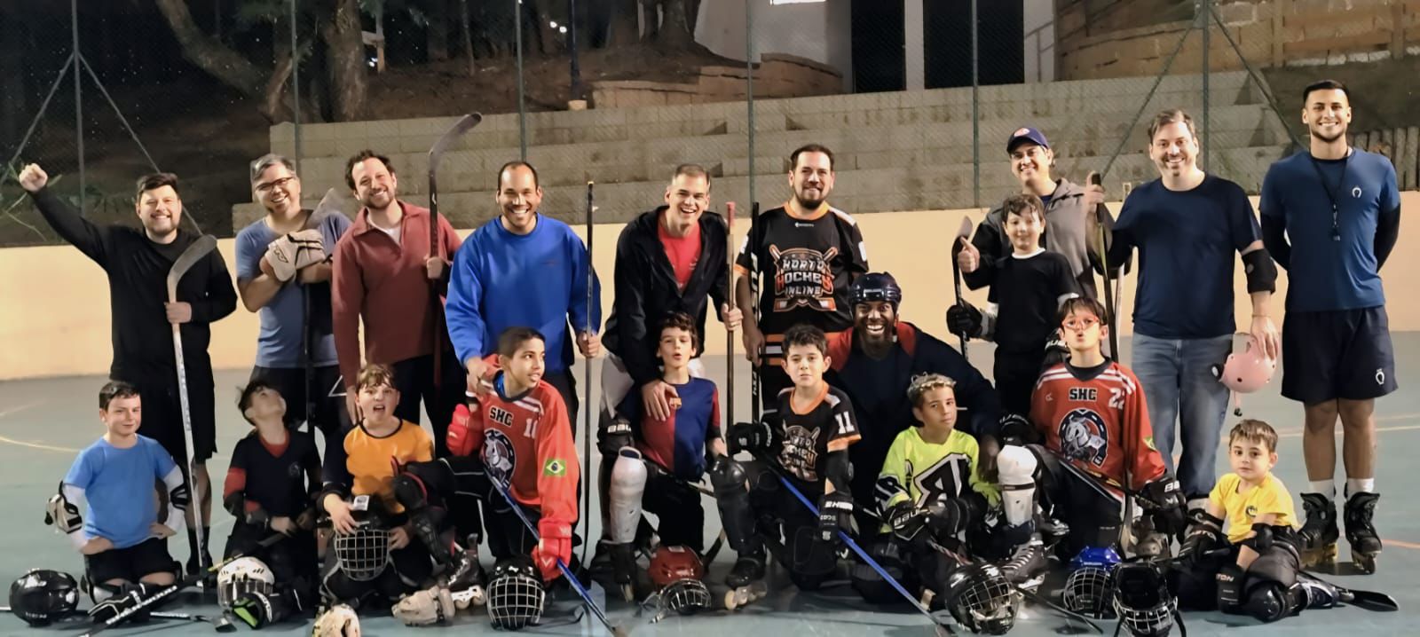 No hóquei, um pouco mais complexo, os pais tiveram uma introdução à modalidade e, logo em seguida, estavam competindo com e contra seus filhos.