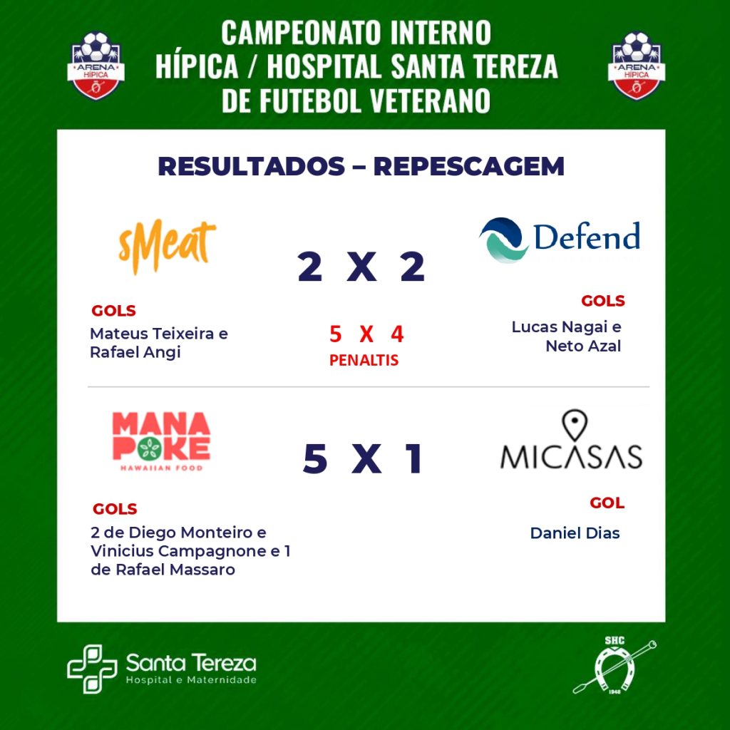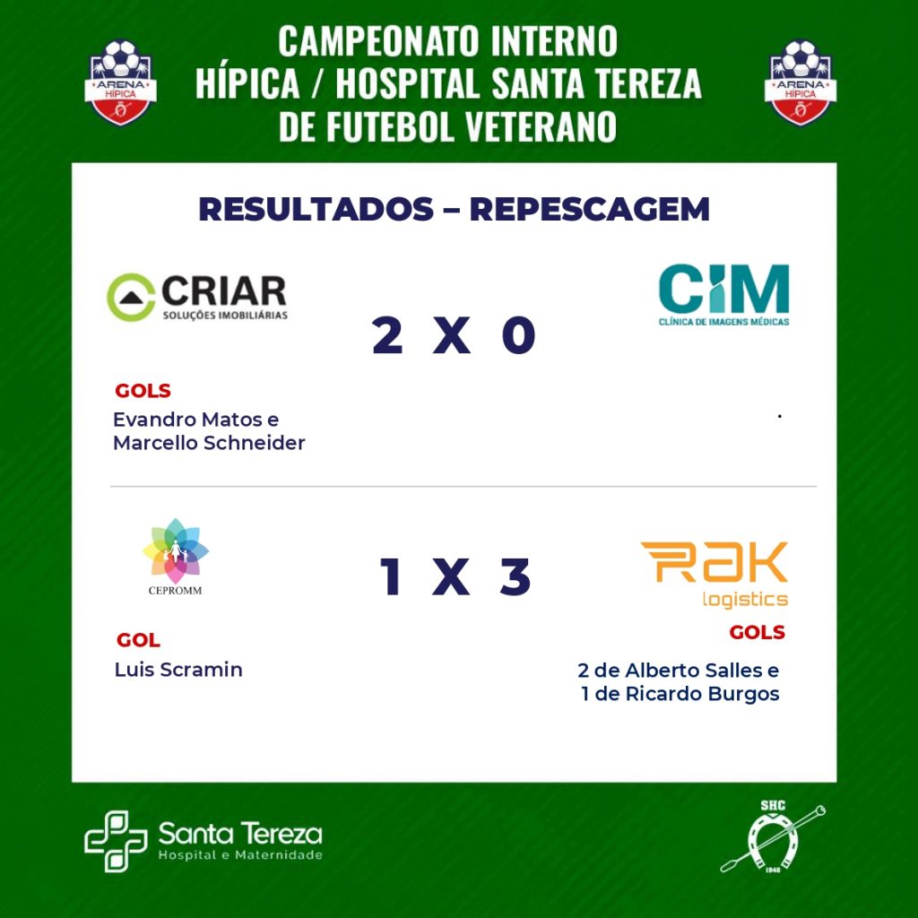 Domingo, dia 18 de outubro ocorreu a repescagem do CAMPEONATO INTERNO HÍPICA/HOSPITAL SANTA TEREZA DE FUTEBOL VETERANO.