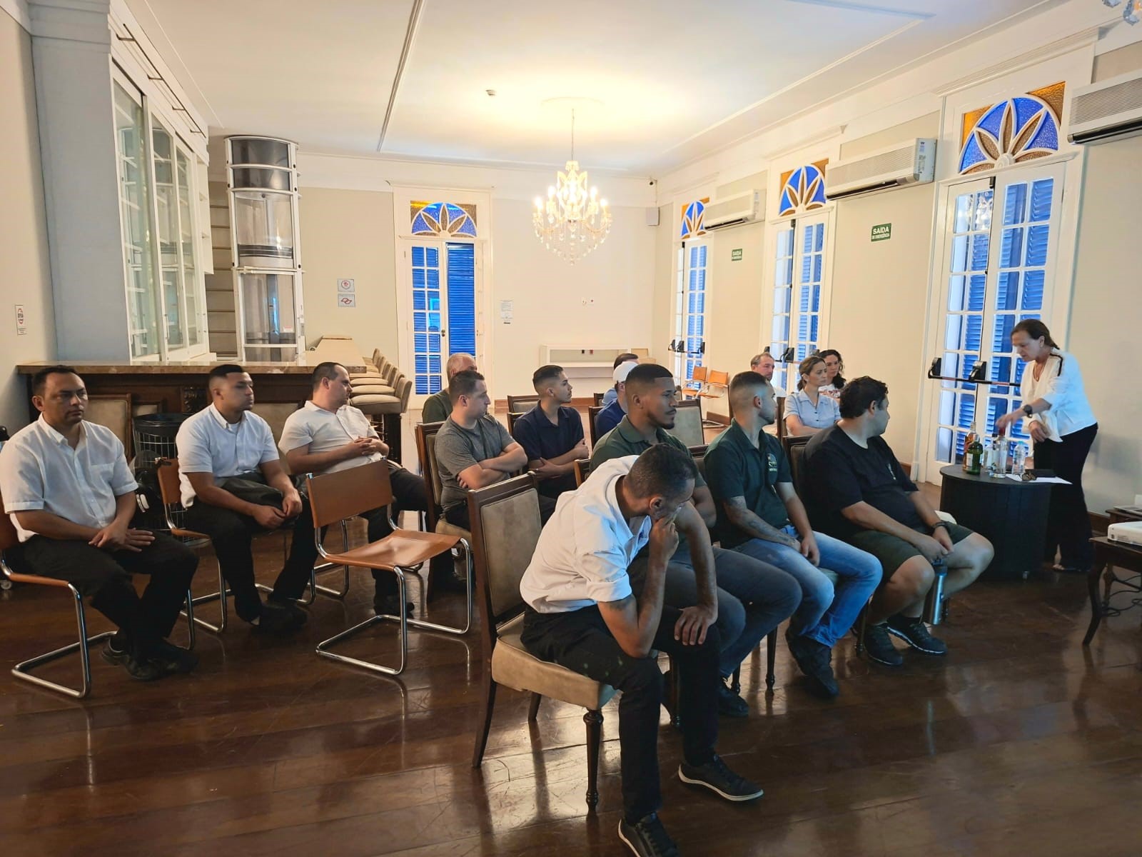 O departamento de Bares e Restaurantes da SHC promoveu um treinamento ontem (07), na Sala da Lareira, com o objetivo de intensificar as orientações práticas para identificar possíveis fraudes em bebidas destiladas. A palestra de Bárbara Paes, nutricionista do clube, reuniu cerca de 15 colaboradores que atuam nos concessionários da SHC.
