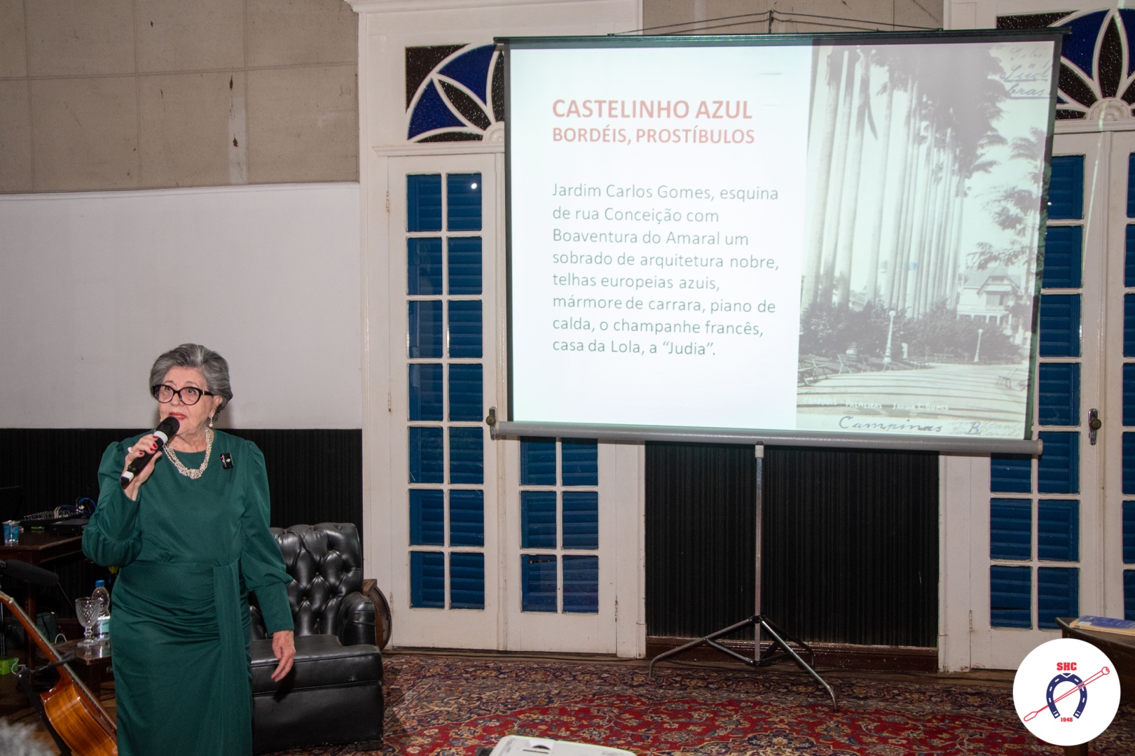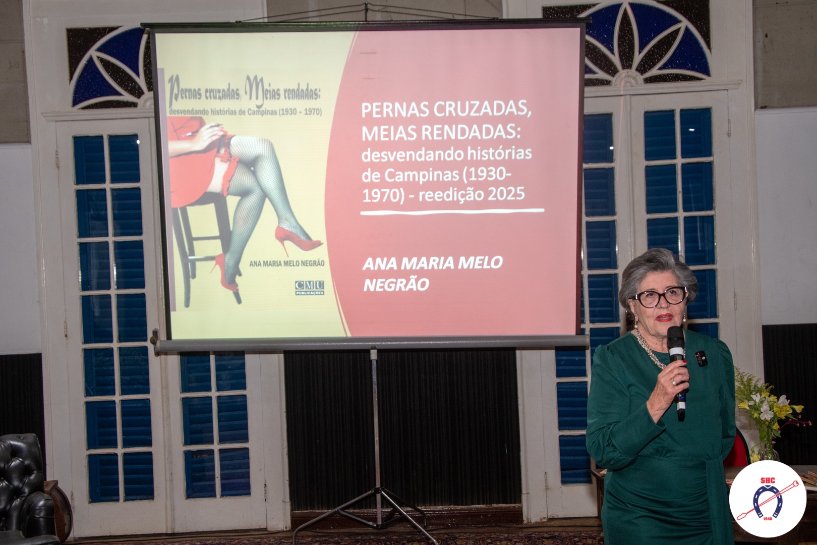 Em seguida, a escritora Ana Maria apresentou sua obra Pernas cruzadas, meias rendadas: desvendando histórias de Campinas (1930-1970), compartilhando com o público os desafios enfrentados durante sua produção. Fruto de pesquisas desenvolvidas junto ao Centro de Memória da Unicamp, o livro reconstitui aspectos pouco explorados da história da cidade, dando voz a personagens e realidades marginalizadas pela narrativa oficial. O foco principal da obra são os antigos bordéis de Campinas, desde os luxuosos — como o famoso Castelinho Azul, localizado na região nobre da cidade — até os mais populares, situados nas imediações do Mercado Municipal.