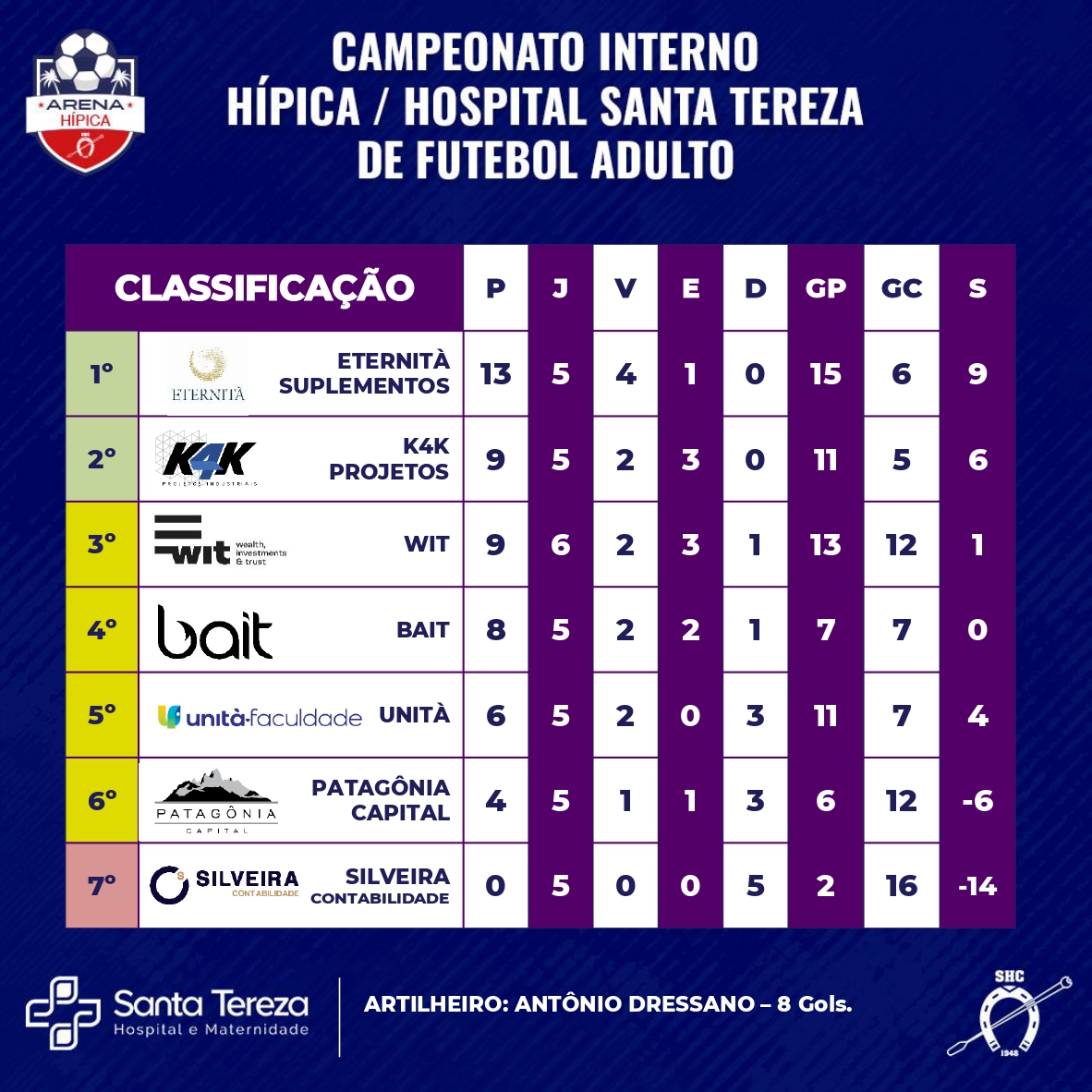 O Campeonato Interno Hípica/Hospital Santa Tereza de Futebol Adulto vai chegando ao final da 1ª. fase e, em breve, começará a fase mata-mata!